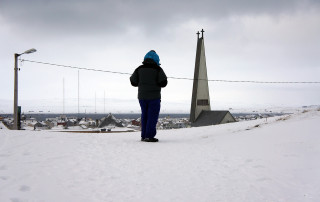 As we trundle down the snow-covered street the twin crosses capping the church spire are visible most of the way. The first church in the center of Vardø was built in 1307. A more recent version constructed in 1869 was torched by the Germans in 1944 as they retreated from northern Norway. The current Church of Norway structure, its interior a slightly chilly and austere mid-century Lutheran chapel, doesn’t see much traffic on Sundays, but remains an important civic center for rites and passages, as well as the occasional concert.